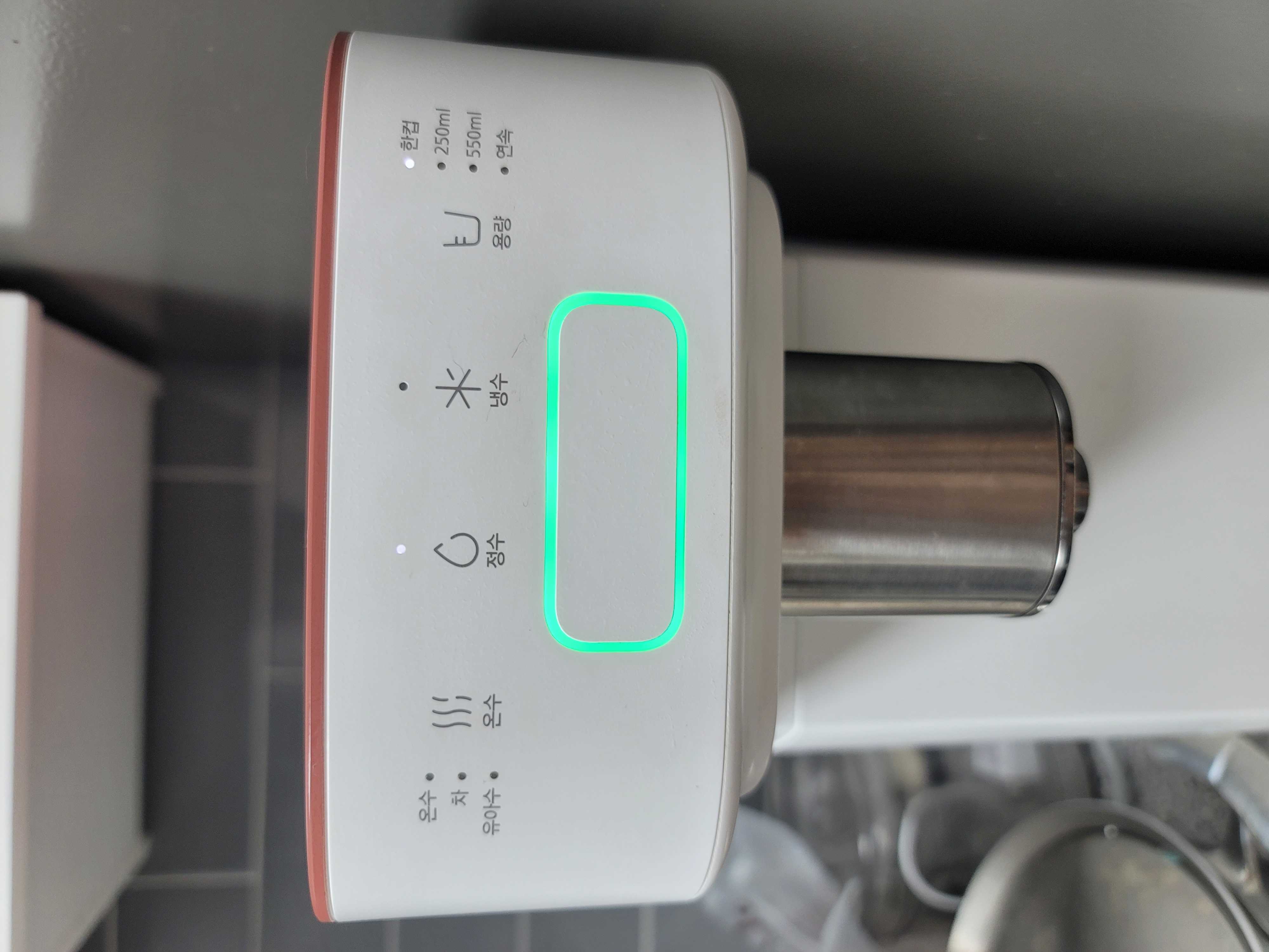 자동소독도 되고, led도 있고, 예쁜 색깔입니다. 온수 온도조절 및 ml조절도 됩니다.