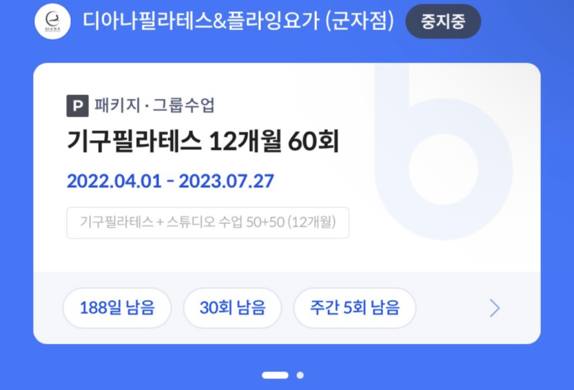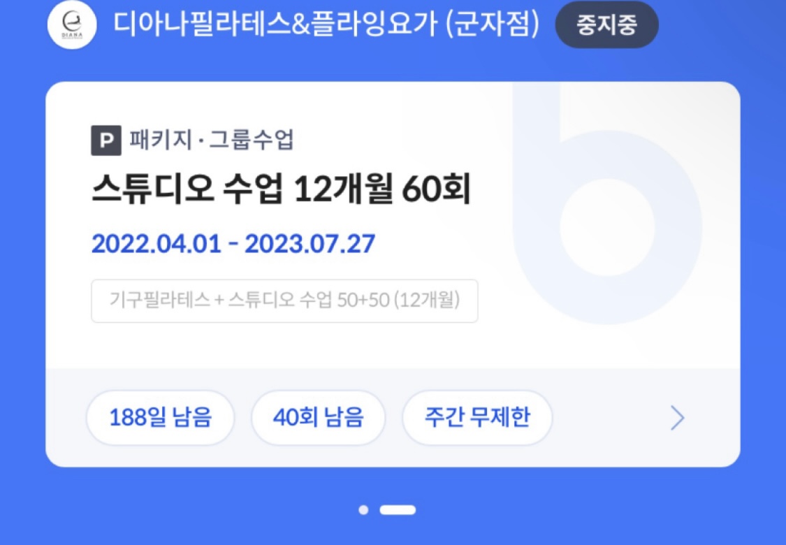 디아나 필라테스요가 군자점 기구필라테스30회+스튜디오수업40회 양도해요